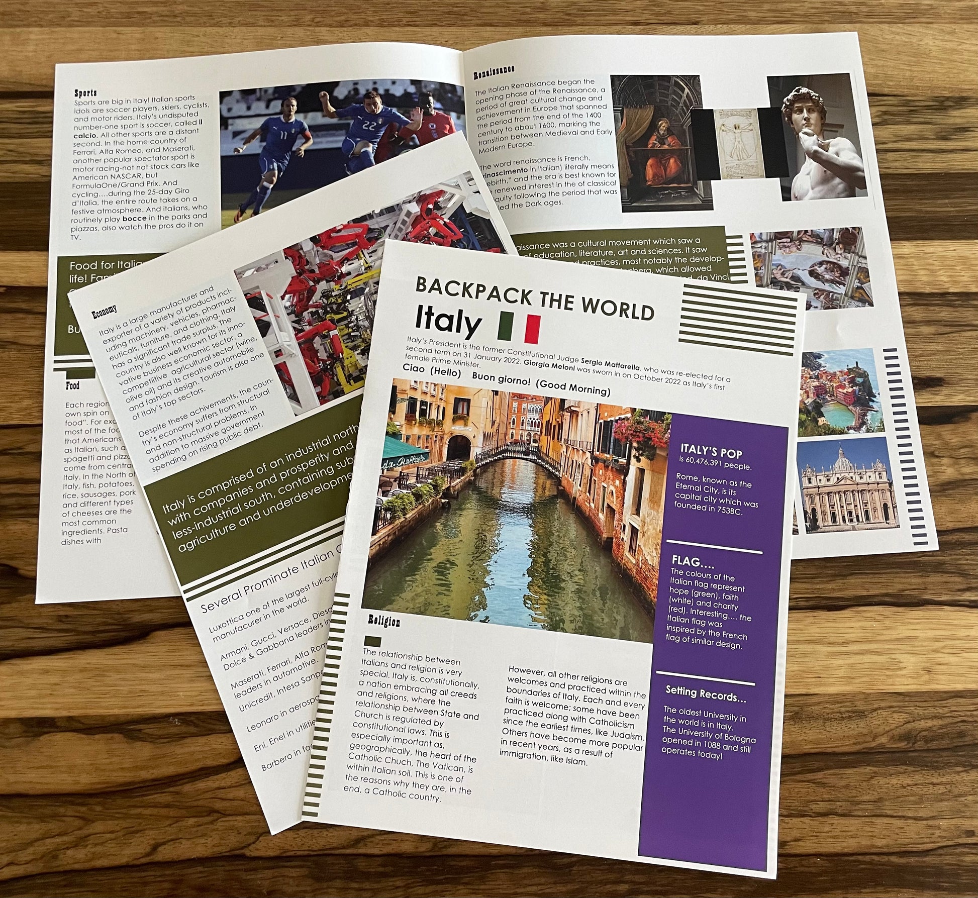 Order the Italy Subscription Box today, read all about Italy in our 4 color, timely six-page newsletter, visit our Off-the-Grid Virtual Tours in Italy, learn parts of the language, make a venetian mask, convert euros to dollars and cook a favorite recipe from our Around the World Series. Receive a letter from Nate your tour guide, giving an account of his stay in Italy. A map of Italy is included so you can track Nate's travels. A set of Peace stickers (in Italian) is included!