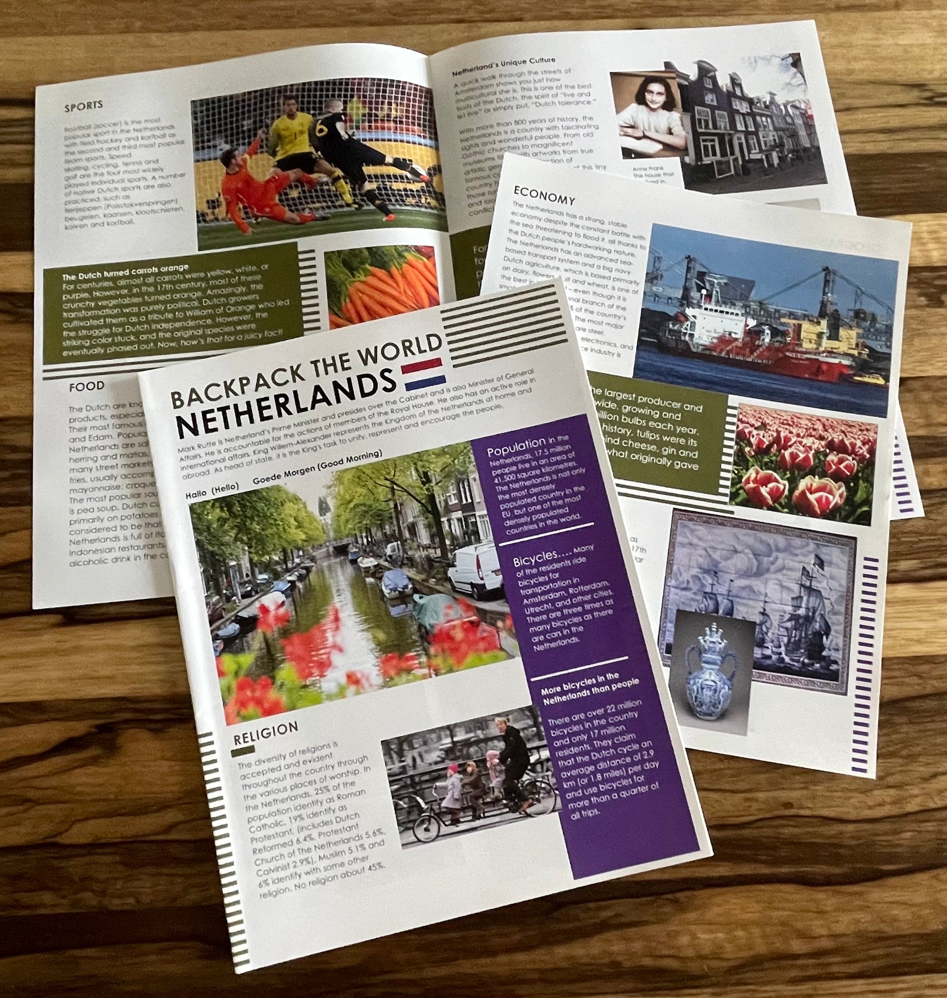 Order the Netherlands Subscription Box today! Read all about the Netherlands in our 4 color, timely six-page newsletter, visit Off-the-Grid Virtual Tours in the Netherlands, learn parts of the dutch language, convert euros to dollars, learn a craft of the country, and cook a favorite recipe from our Around the World Series. Receive a letter from Nate your tour guide, giving an account of his stay in the Netherlands. A map of the Netherlands is included so you can track Nate's travels. A set of Peace stickers (in Dutch) is included!